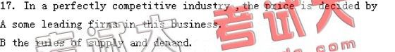 Perfect competition exists in an industry that contains many relatively samll firms producing identical products.The most importhant characteristic(特征) of a perfectly competitive industry if that no single firm has any control over prices.This important characteristic follows from two assumptions(假设).First, a competitive industry is composed of many firms, each being very samll relative to the size of the industry .S***nd ,every firm in a perfectly competitive industry producse exactly the same product.